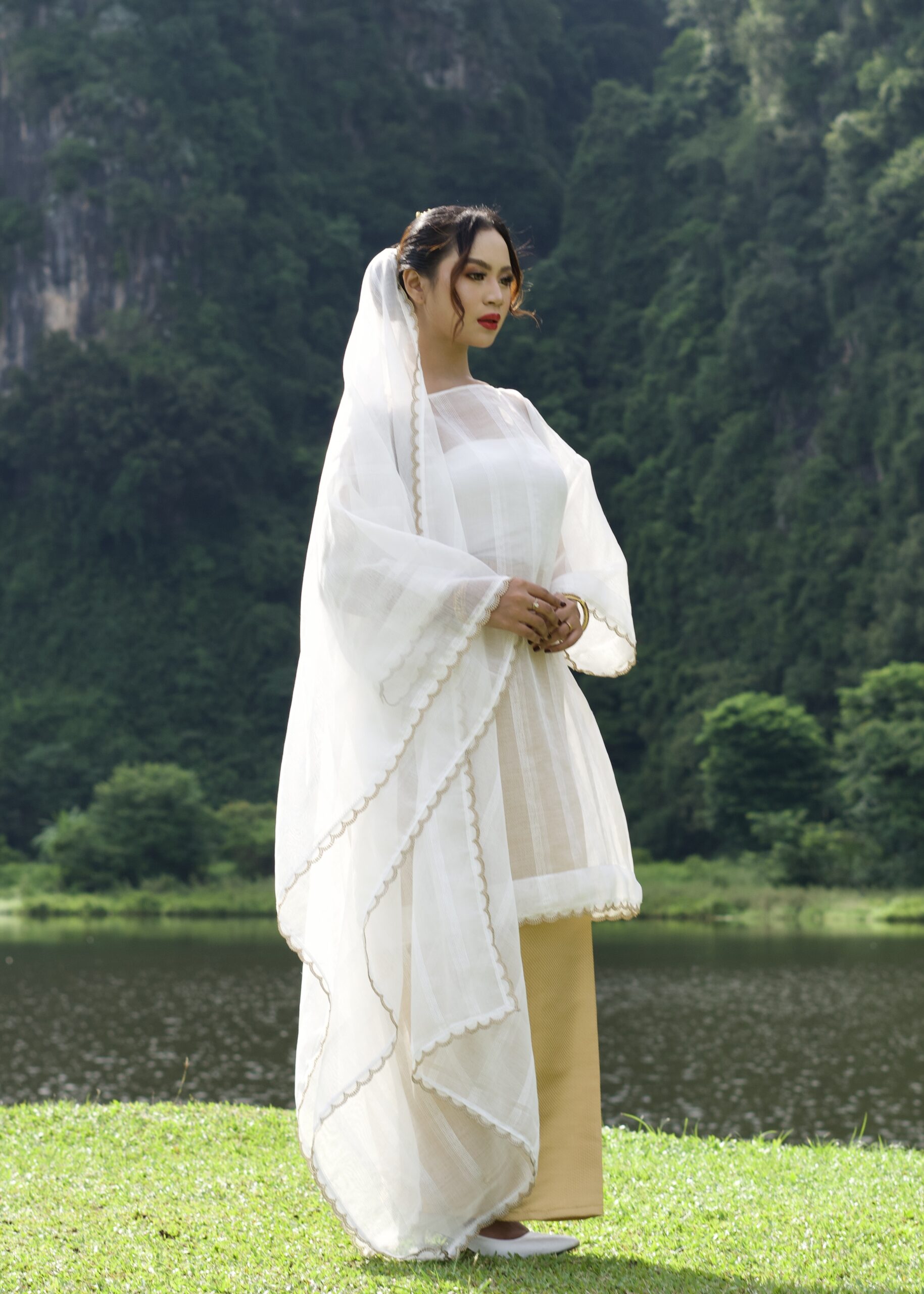 Songket emas berkilau lembut umpama bayang cahaya bulan di hujung tirai jendela …tenang, bersahaja, tapi penuh martabat”